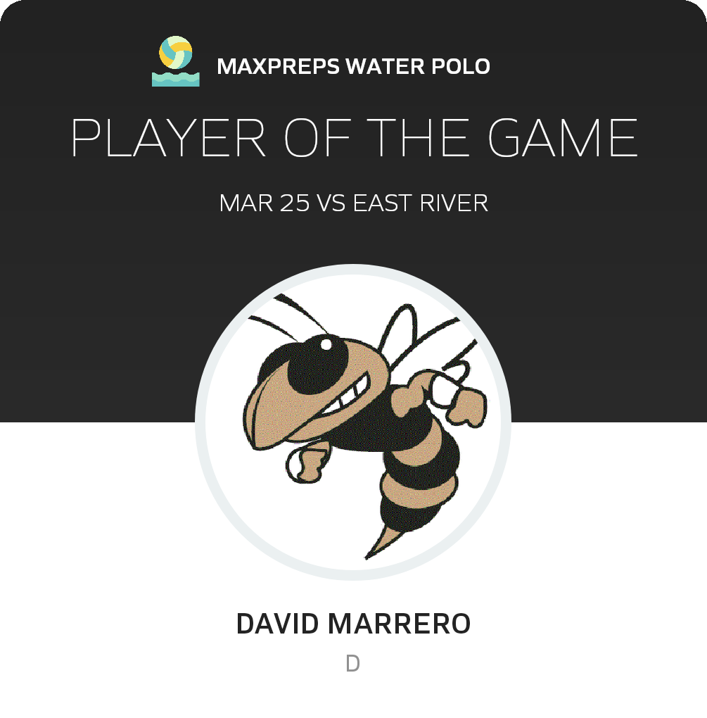 Congratulations to #9 David Marrero for being selected the Bishop Moore Water Polo Player of the Game.