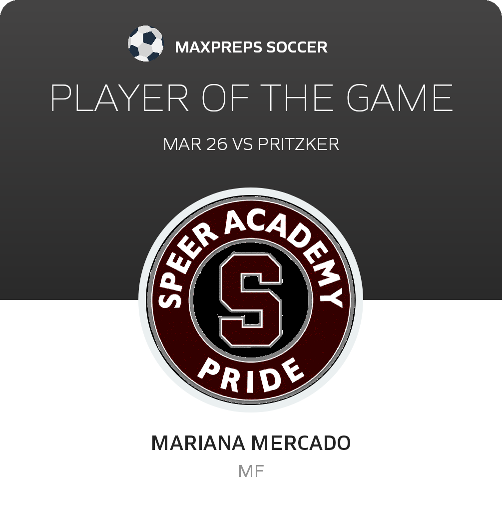 Congratulations to #34 Mariana Mercado for being selected the ITW David Speer Academy Girls JV Soccer Player of the Match.