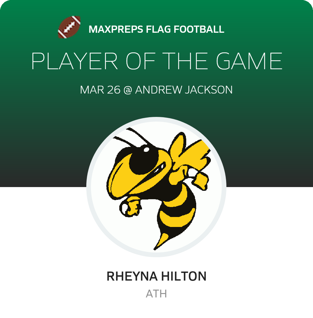 The Andrew Jackson (Jacksonville, FL) varsity flag football team lost Thursday's away conference game against Yulee (FL) by a score of 27-13.
