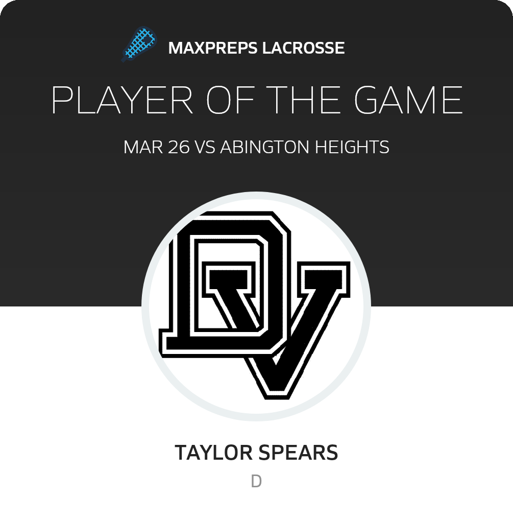 Congratulations to #6 Taylor Spears for being selected the Delaware Valley Girls Lacrosse Player of the Game.