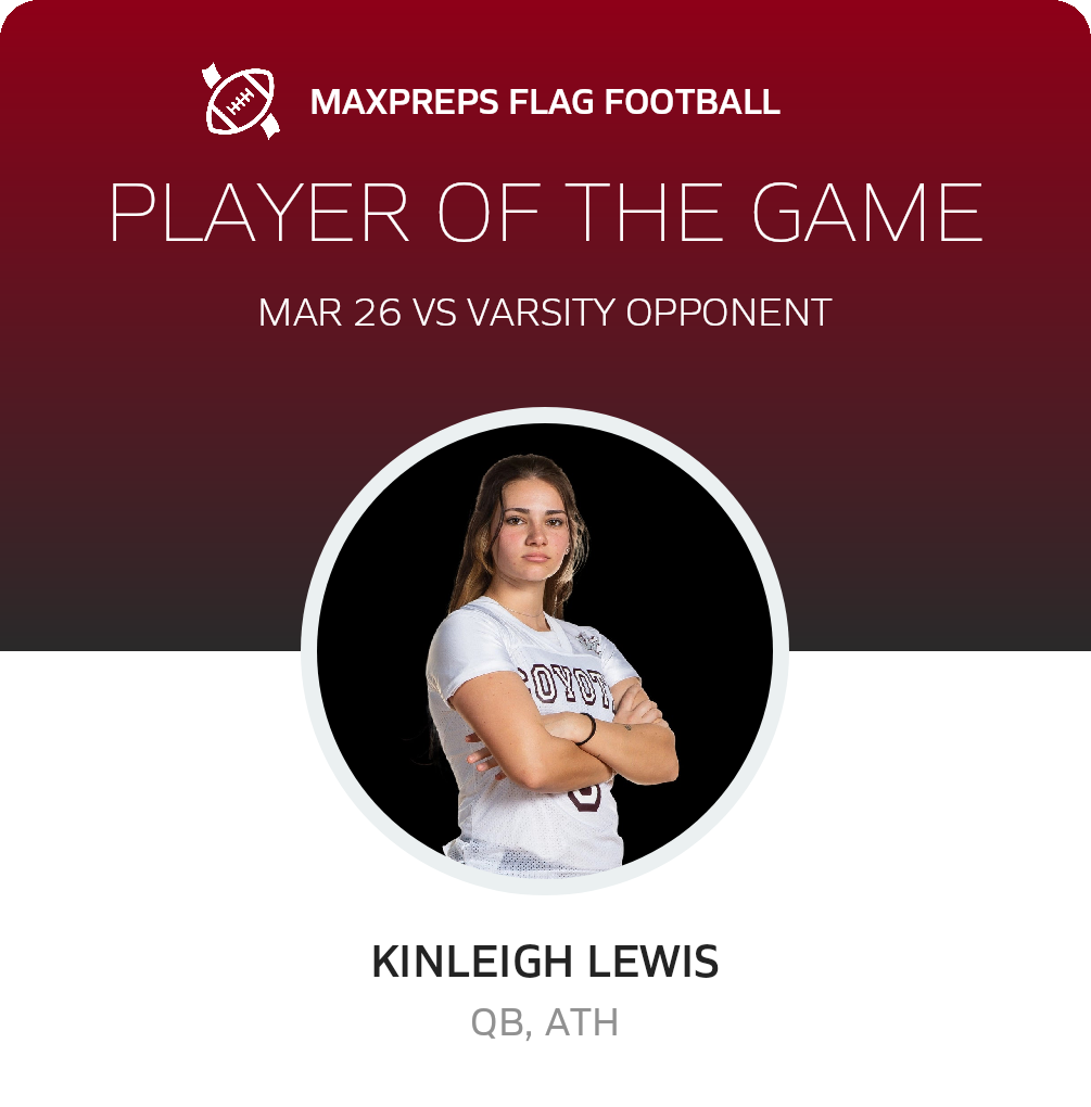 Congratulations to #8 Kinleigh Lewis for being selected the West Creek Girls Flag Football Player of the Game.