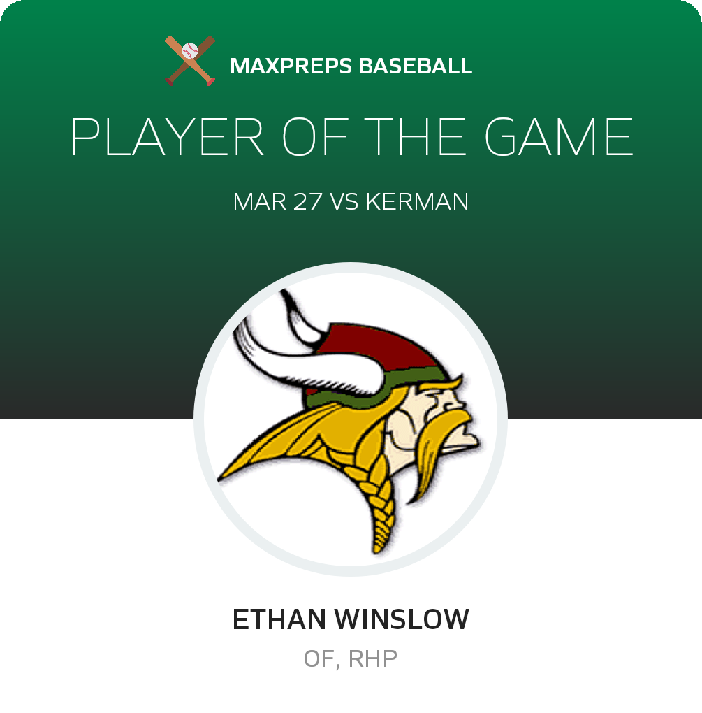 March 27, 2023: Kingsburg, CA 93631 The Kingsburg Vikings the visiting Kerman Lions baseball team by a count of 3-0 in Monday's league bout.