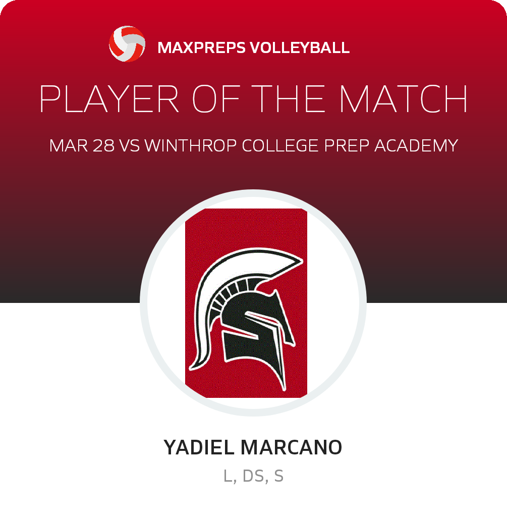 Congratulations to #15 Yadiel Marcano for being selected the Sports Leadership & Management Boys Volleyball Player of the Match.
