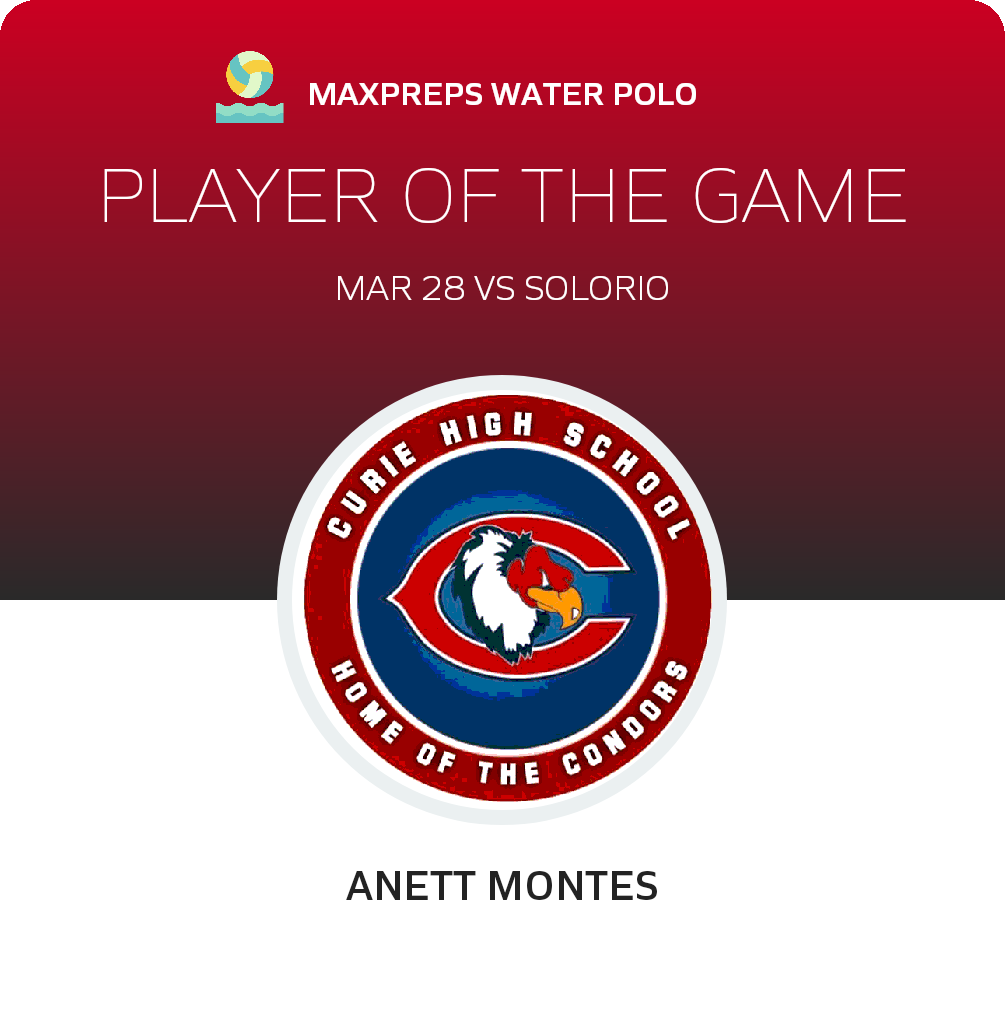 Congratulations to #10 Anett Montes for being selected the Curie Girls Water Polo Player of the Game.