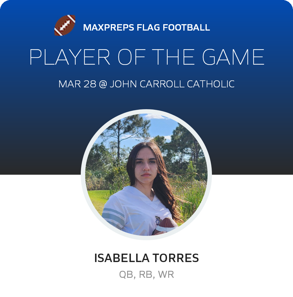 The John Carroll Catholic (Fort Pierce, FL) varsity flag football team won Tuesday's home non-conference game against Tradition Prep (Port St. Lucie, FL) by a score of 28-6.
