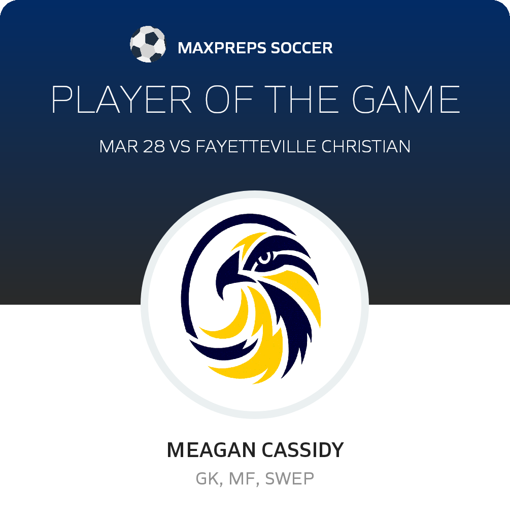 Congratulations to #8 Teagan Verton for being selected the Fayetteville Christian Girls Soccer Player of the Match.