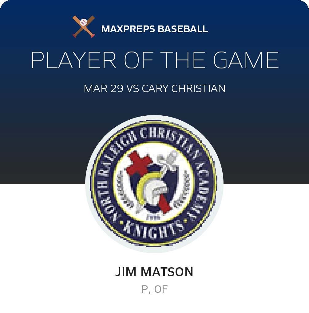 March 29, 2022: Raleigh, NC 27616 In Tuesday's non-league challenge, the North Raleigh Christian Academy Knights (Raleigh, NC) baseball squad triumphed over the visiting Cary Christian Knights (Cary, NC), by a final score of 10-3.