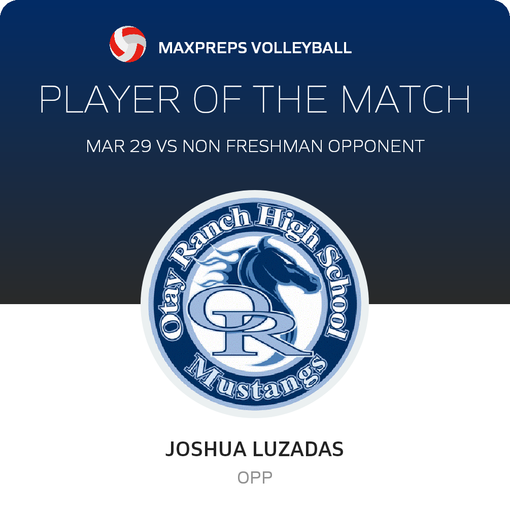 March 29, 2022: Chula Vista, CA 91913 The Otay Ranch Mustangs volleyball team scored 2 points and limited the visiting Non Freshman Opponent  to 0 in the Mustangs non-league victory on Tuesday.