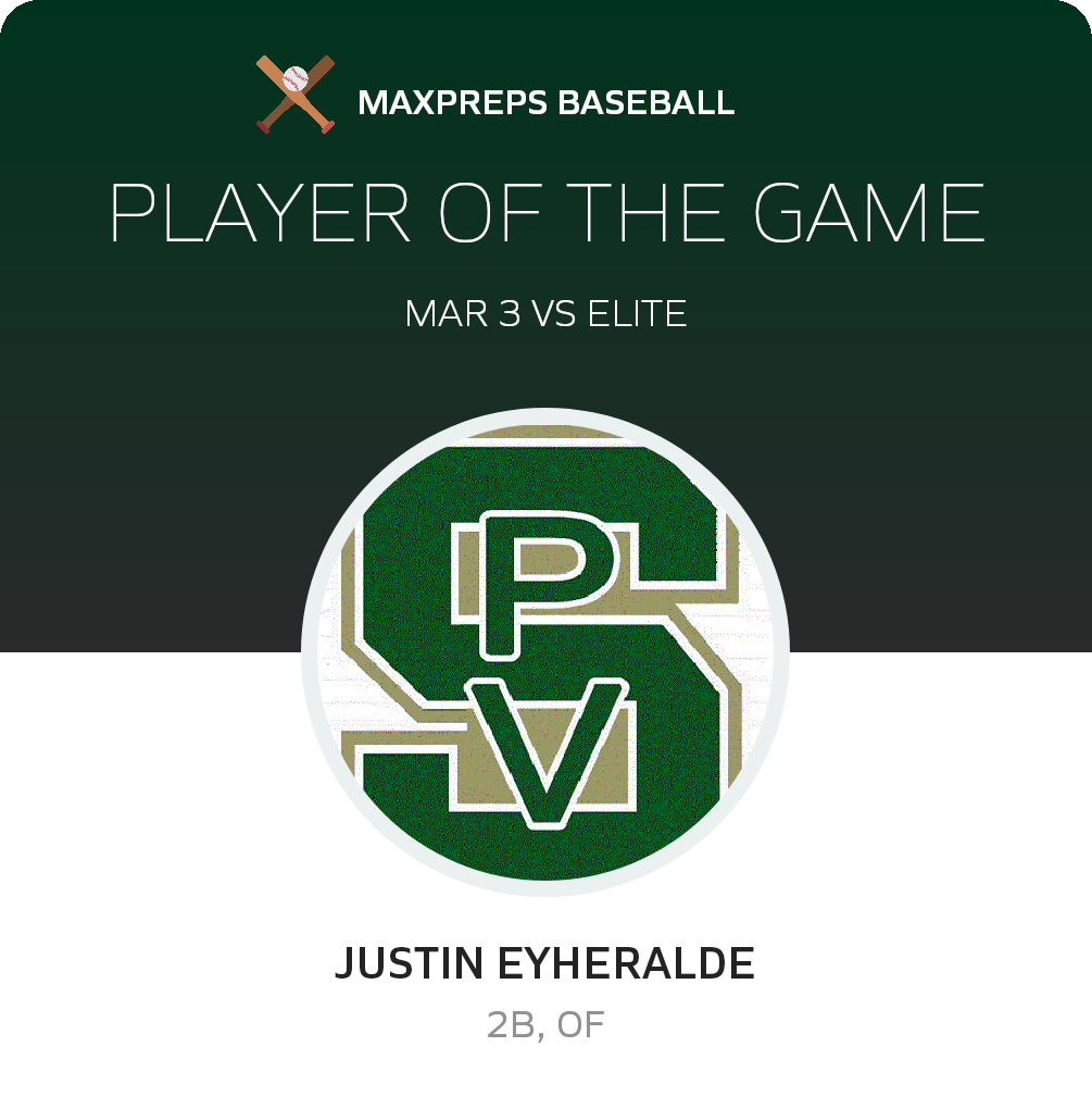 Congratulations to #6 Justin Eyheralde for being selected the St. Patrick-St. Vincent Baseball Player of the Game.