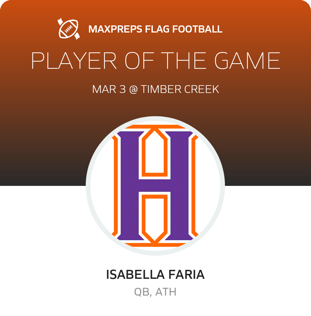 Congratulations to #11 Isabella Faria for being selected the Horizon Girls JV Flag Football Player of the Game.