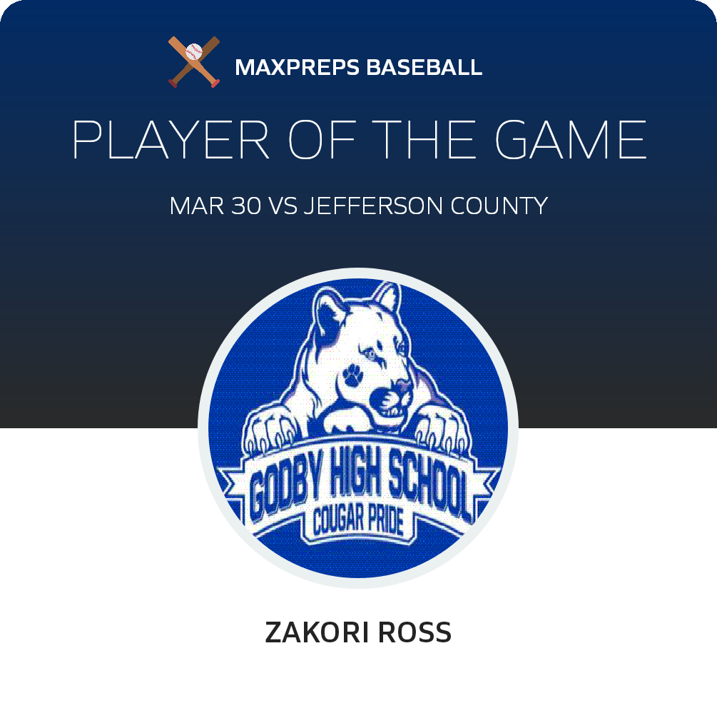 March 30, 2022: Tallahassee, FL 32303 The Jefferson County Tigers baseball team (Monticello, FL), was overwhelmed 20-0 in Wednesday's non-league outing with the host Godby Cougars (Tallahassee, FL)