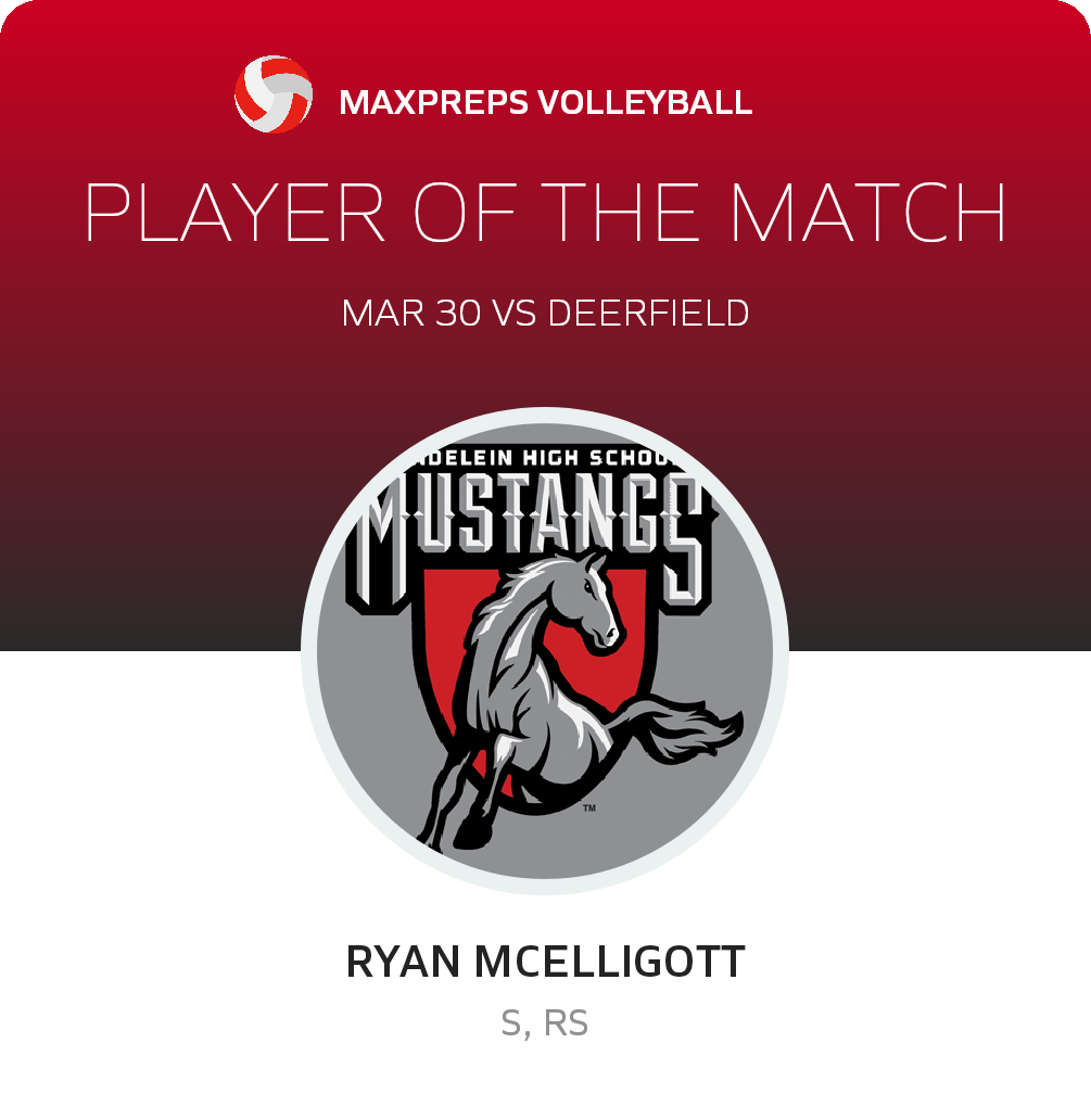 March 30, 2022: Mundelein, IL 60060 The Mundelein Mustangs volleyball team scored 2 points and limited the visiting Deerfield Warriors to 0 in the Mustangs non-league victory on Wednesday.