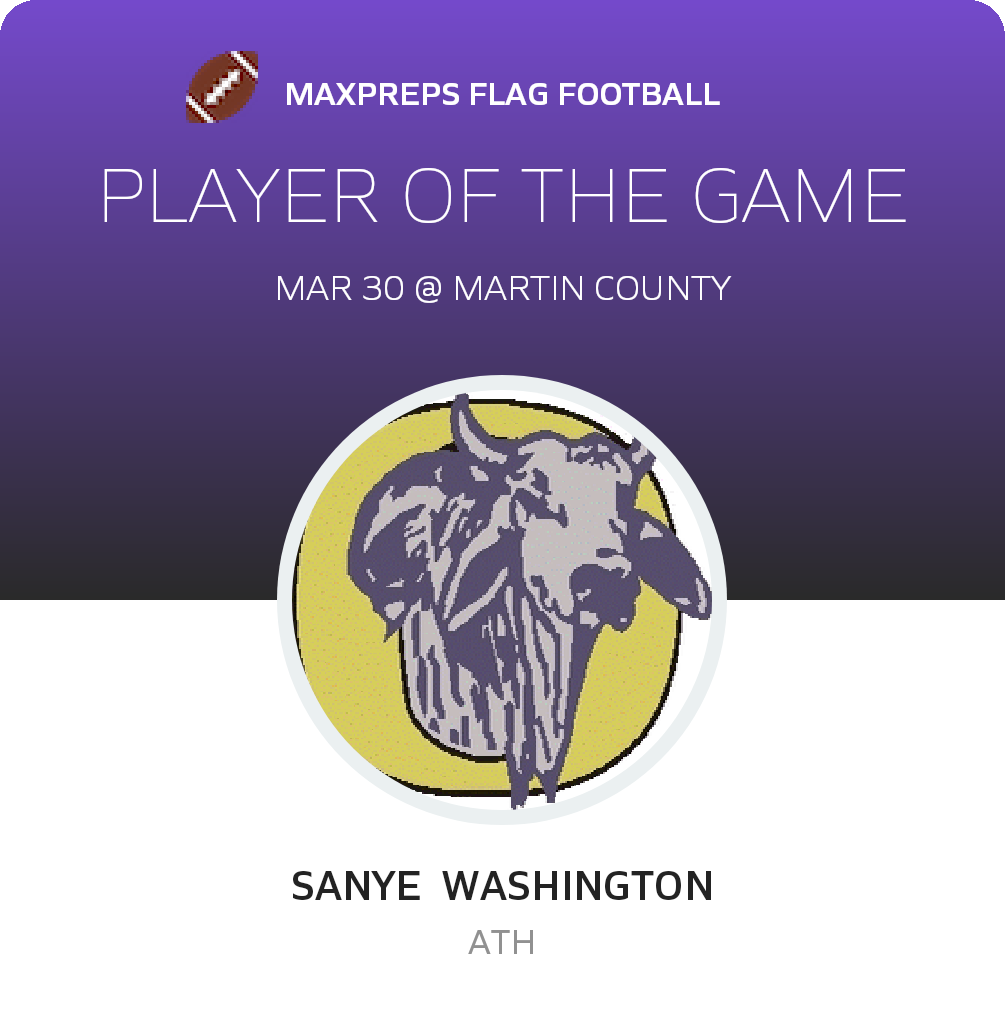 Congratulations to #99 Sanye Washington for being selected the Okeechobee Girls Flag Football Player of the Game.