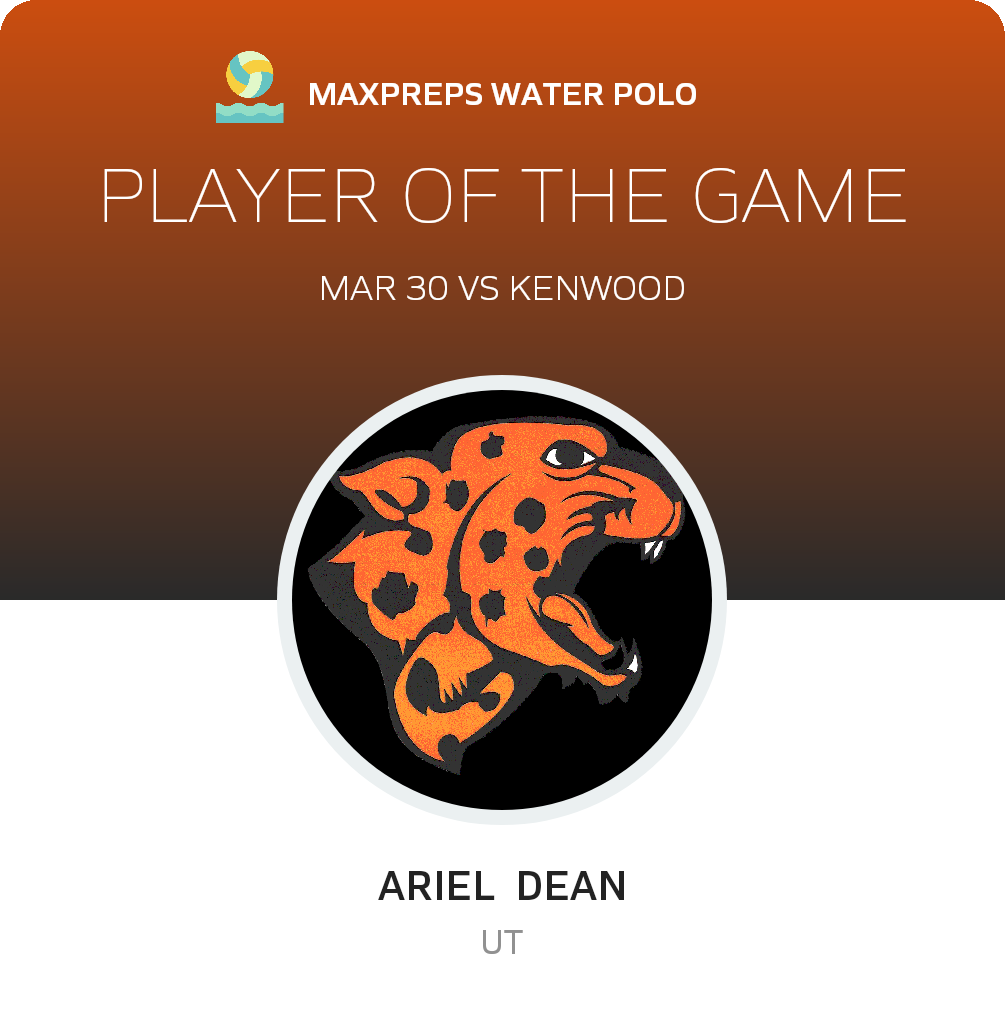 Congratulations to #8 Ariel Dean for being selected the Julian Girls Water Polo Player of the Game.