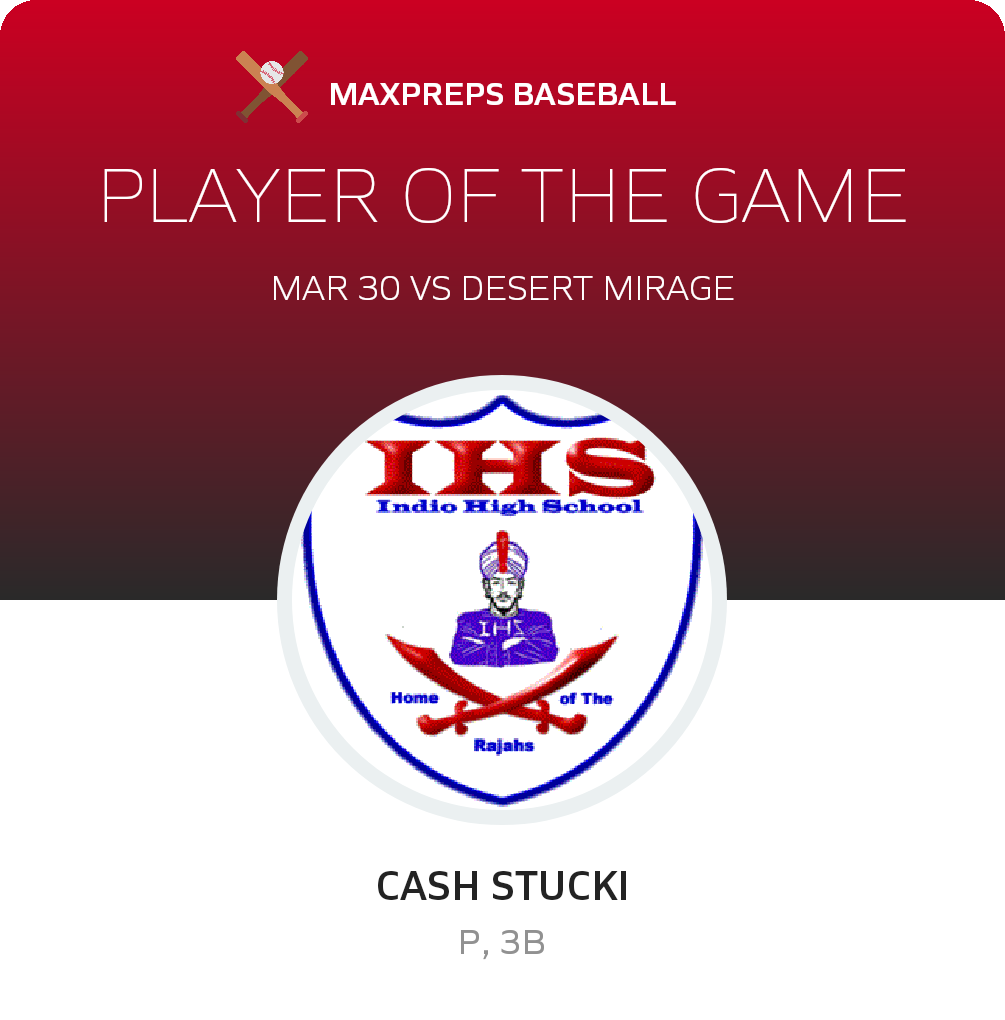 Congratulations to #4 Cash Stucki for being selected the Indio JV Baseball Player of the Game.