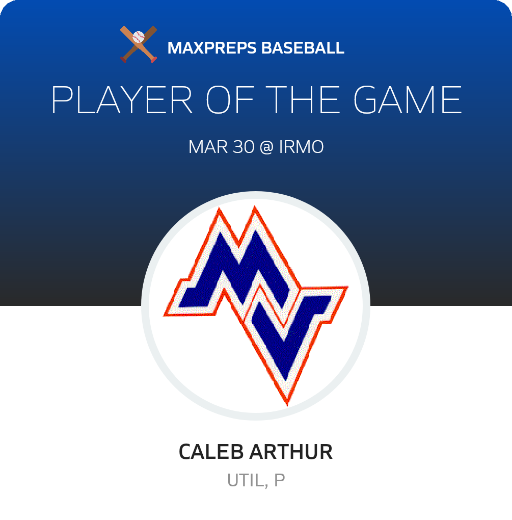 Congratulations to #15 Caleb Arthur for being selected the Midland Valley JV Baseball Player of the Game.