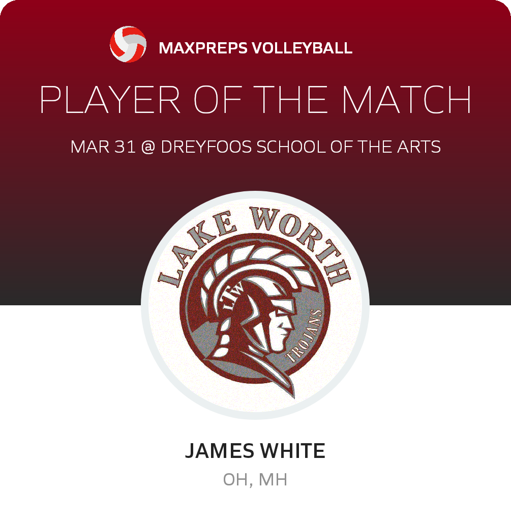 March 31, 2022: West Palm Beach, FL 33401 The Dreyfoos School of the Arts Jaguars volleyball team (West Palm Beach, FL), was dropped 3-1 in Thursday's non-league challenge with the visiting Lake Worth Trojans (Lake Worth, FL)