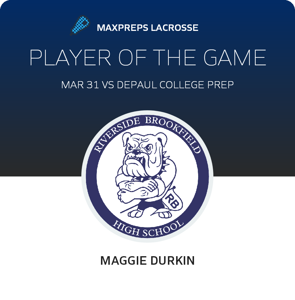 March 31, 2022: Riverside, IL 60546 In Thursday's non-league test, the host Riverside-Brookfield Bulldogs lacrosse squad scored a tight 13-12 victory over the DePaul College Prep Rams.