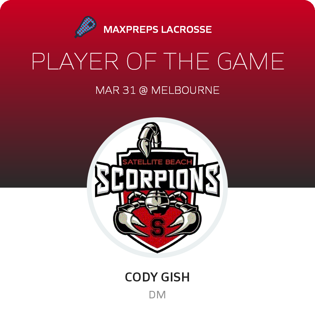 With the defeat, Satellite drops to 3-7 on the season. The Scorpions travel to Edgewood (Merritt Island, FL) to play the Red Wolves in a non-league match on Friday, April 1. The Red Wolves go into the match with a record of 3-6. Edgewood lost 18-6 in their recent league match against Holy Trinity Episcopal Academy (Melbourne, FL)