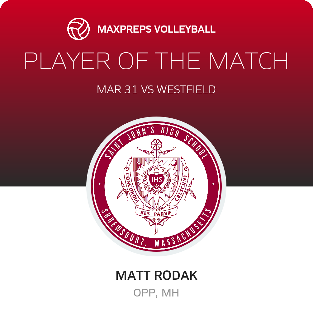 March 31, 2025: Shrewsbury, MA 01545 The Westfield Bombers prevailed the host St. John's Pioneers volleyball squad by a final score of 3-0 in Monday's non-league game.