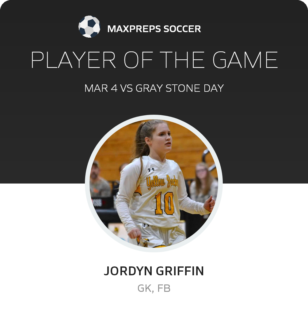 Congratulations to #99 Jordyn Griffin for being selected the Forest Hills Girls Soccer Player of the Match.