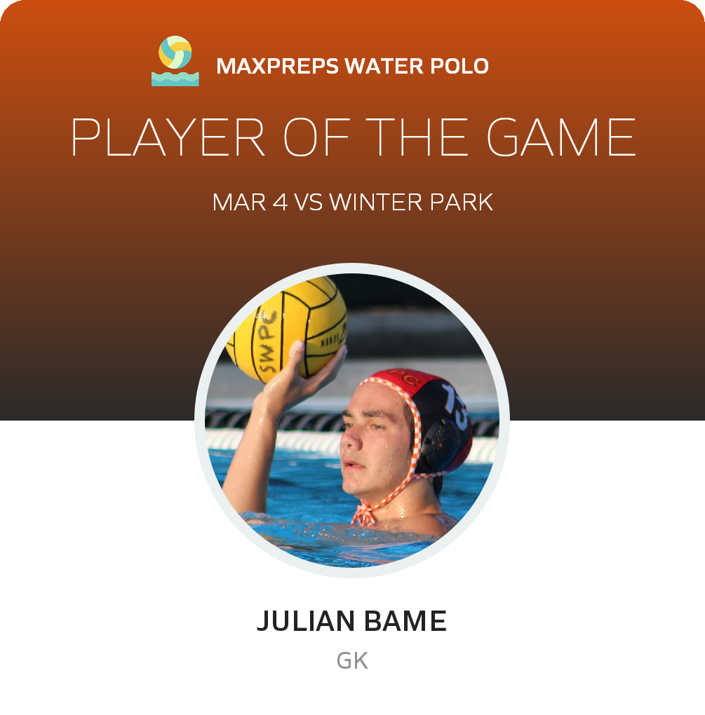 Congratulations to #1 Julian Bame for being selected the Seminole Water Polo Player of the Game.
