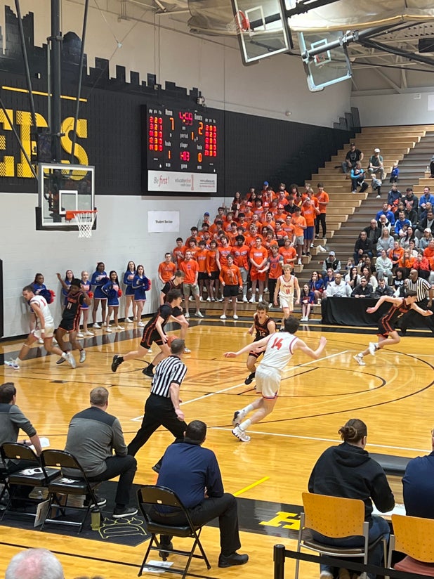 March 4, 2023: Lewis Center, OH 43035 Fans at Saturday's non-league challenge between the Olentangy Orange Pioneers (Lewis Center, OH) and the visiting Hayes Pacers (Delaware, OH), saw Olentangy Orange's basketball squad knock off Hayes by a count of 54-39.