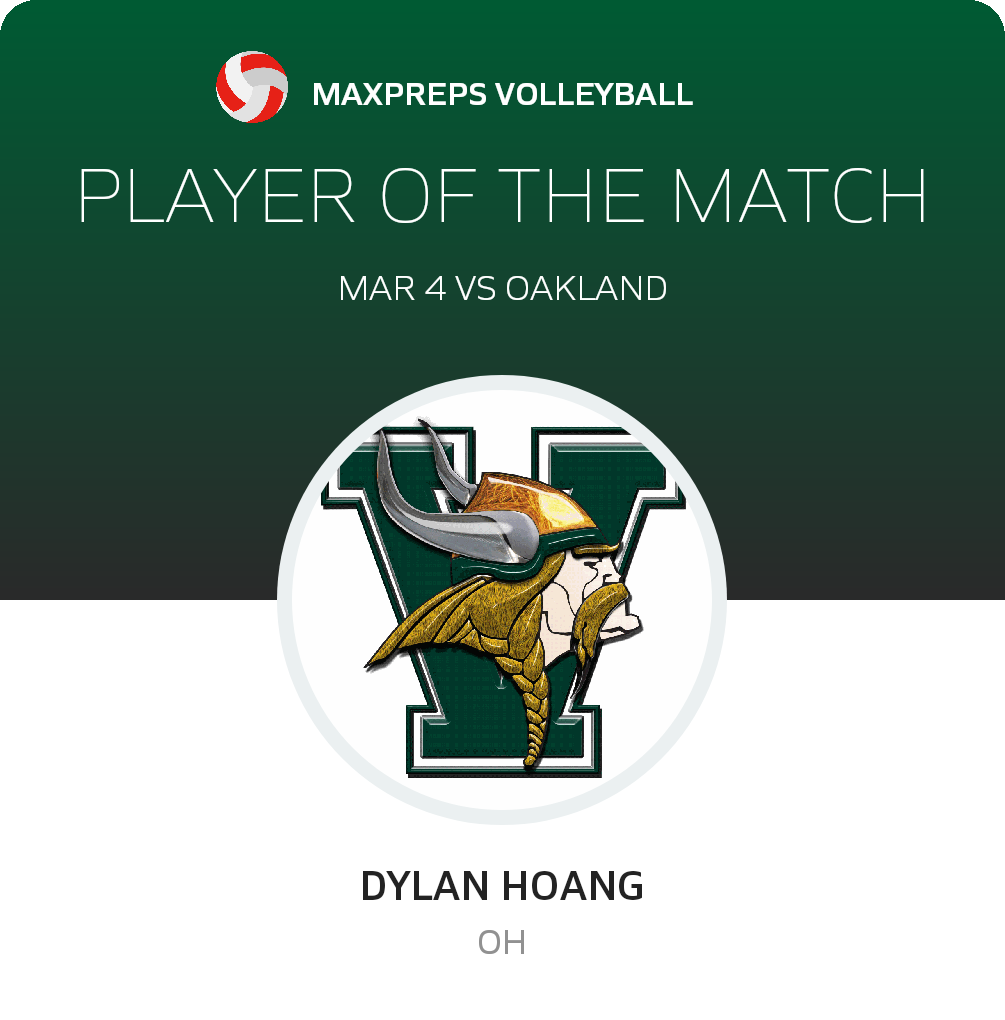March 4, 2023: Oakland, CA 94610 In Saturday's non-league battle, the visiting Vanden Vikings volleyball team scored a 2-0 triumph over the Oakland Willy the Wildcat.
