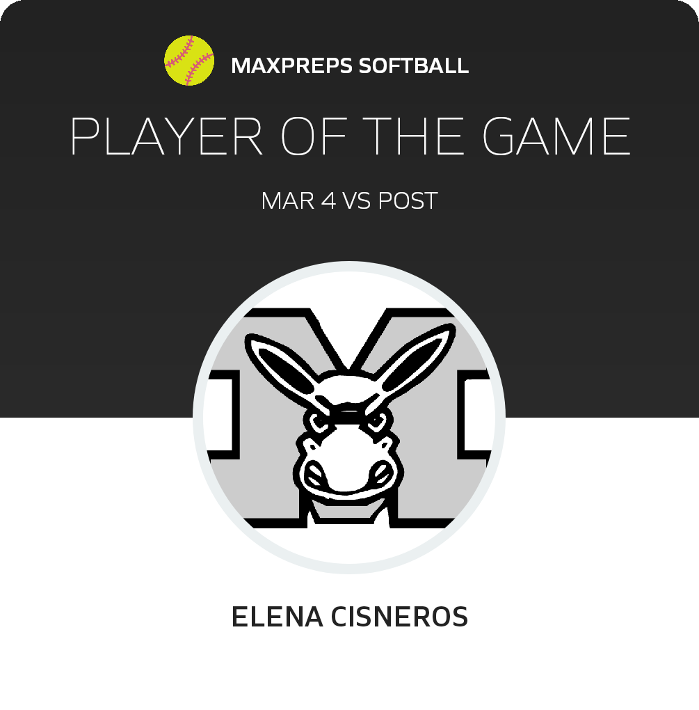 Congratulations to #6 Elena Cisneros for being selected the Muleshoe Softball Player of the Game.