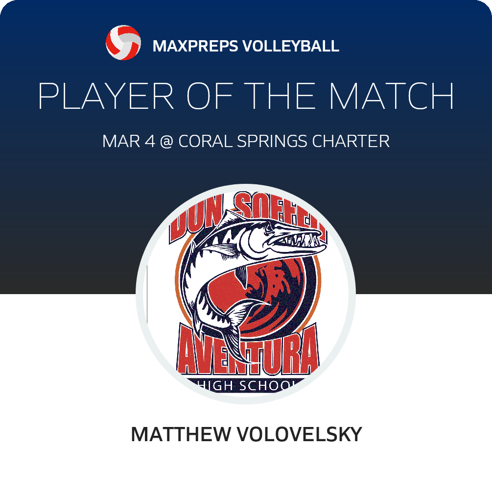 Florida High School Volleyball - Coral Springs Charter over Don Soffer Aventura