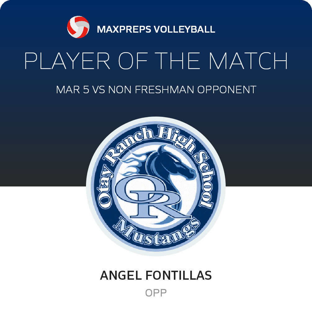 March 5, 2022: , The Otay Ranch Mustangs volleyball team scored 2 points and limited the host Non Freshman Opponent to 0 in the Mustangs non-league victory on Saturday.