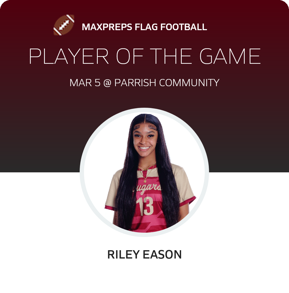 Congratulations to #13 Riley Eason for being selected the Countryside Girls Flag Football Player of the Game.
