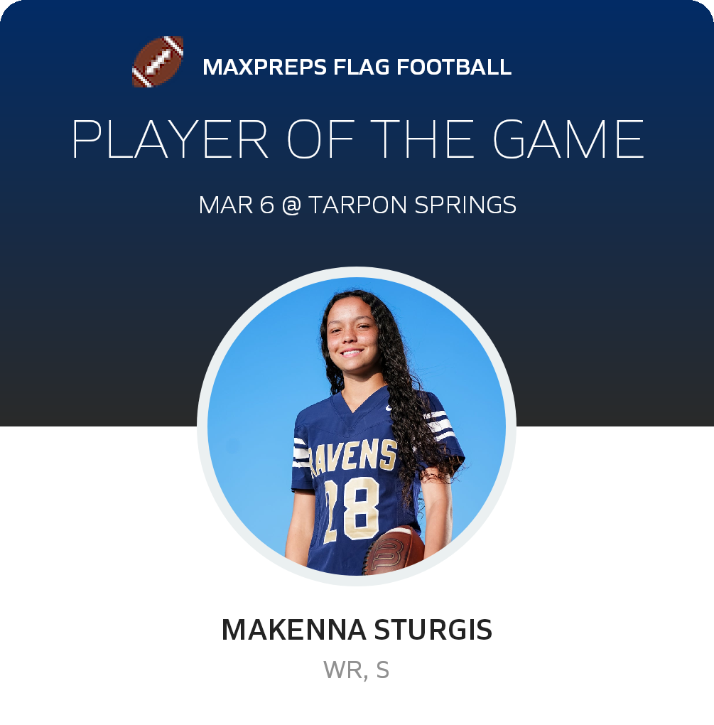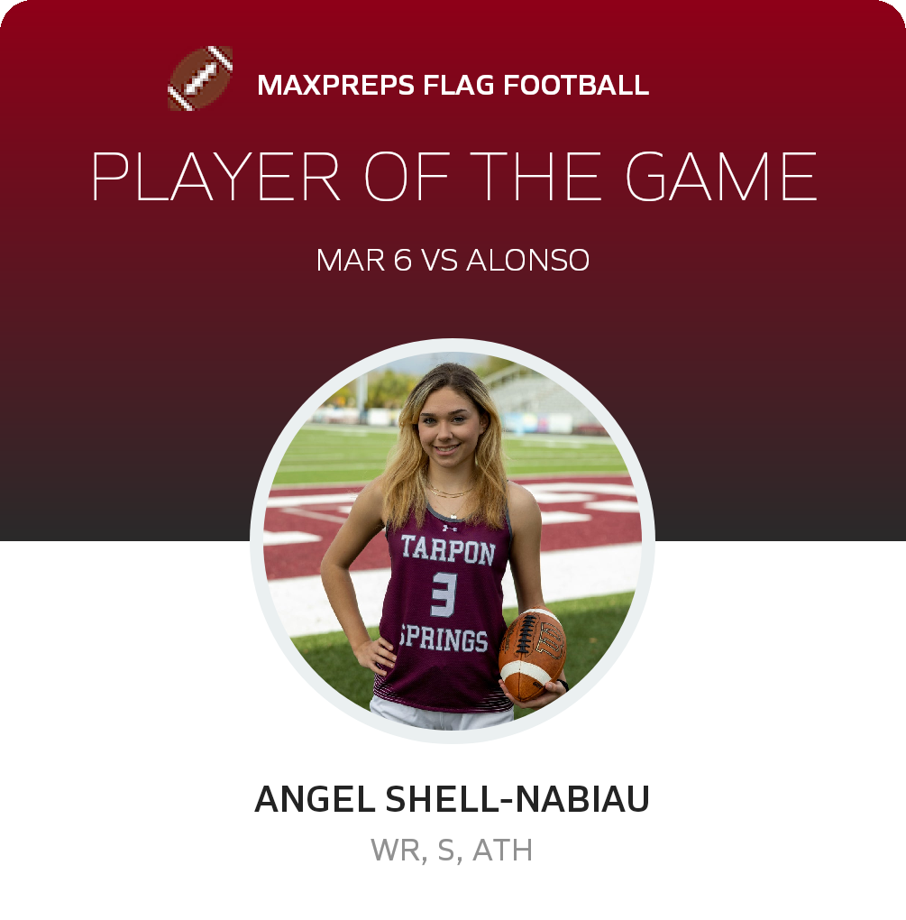 Congratulations to #3 Angel Shell-Nabiau for being selected the Tarpon Springs Girls Flag Football Player of the Game.