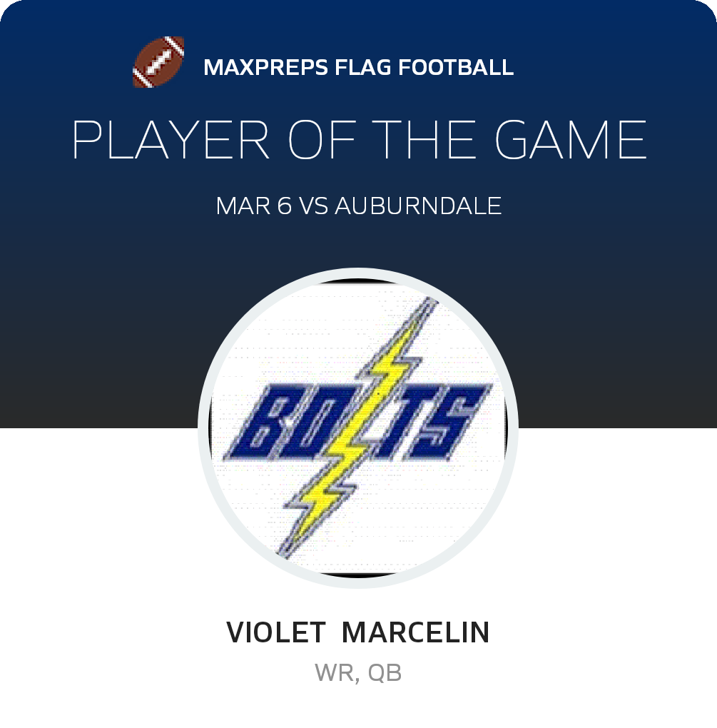 Congratulations to #3 Violet Marcelin for being selected the Ridge Community Girls Flag Football Player of the Game.