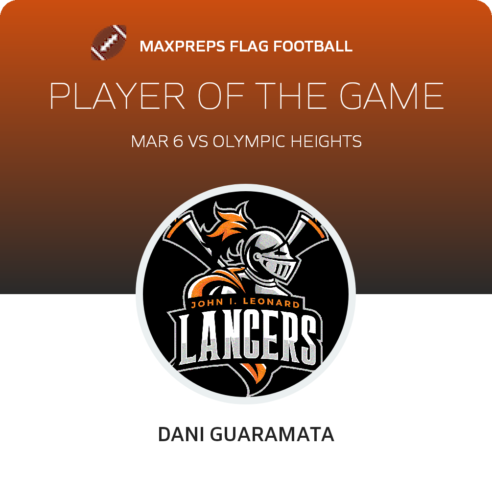 Congratulations to Dani Guaramata for being selected the Leonard Girls Flag Football Player of the Game.