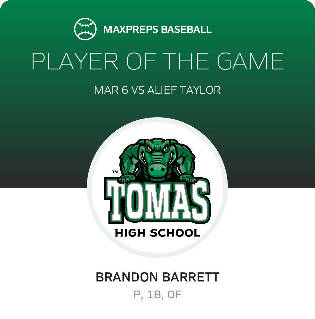 March 6, 2026: Houston, TX 77083 The Tomas Gators (Richmond, TX) baseball trounced the host Alief Taylor Lions (Houston, TX), 9-1 in Friday's non-league challenge.