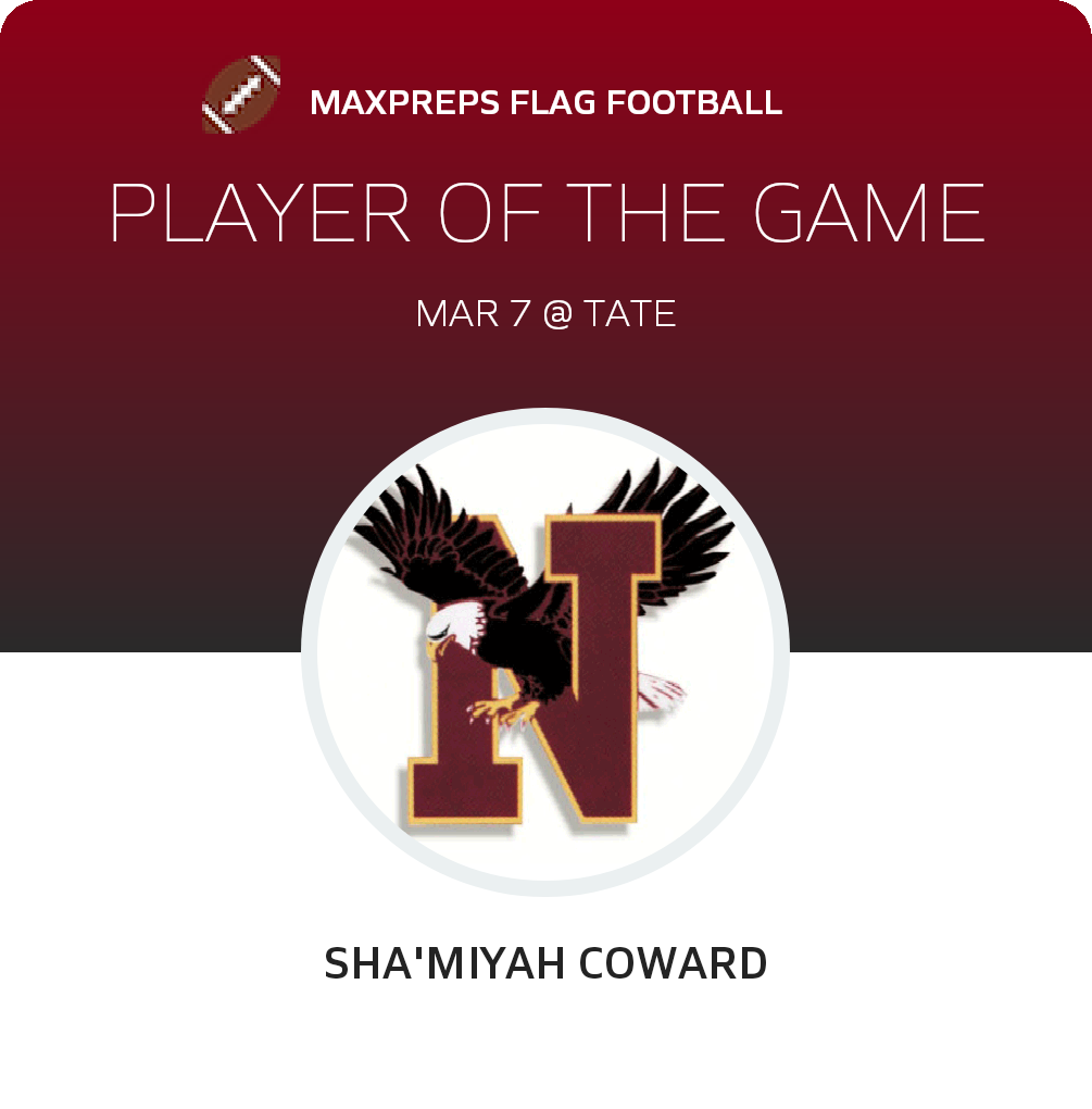 Congratulations to #2 Sha'Miyah Coward for being selected the Niceville Girls Flag Football Player of the Game.