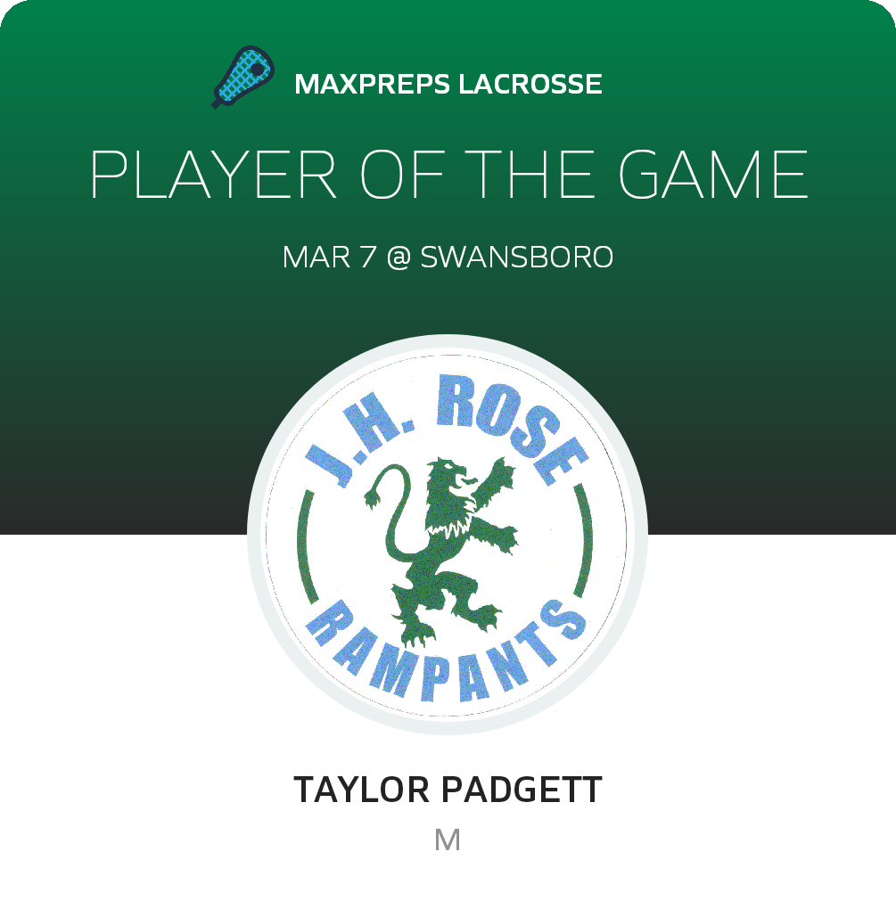 March 7, 2022: Swansboro, NC 28584 The J.H. Rose Rampants (Greenville, NC) lacrosse triumphed over the host Swansboro Pirates (Swansboro, NC), 10-3 in Monday's non-league outing.