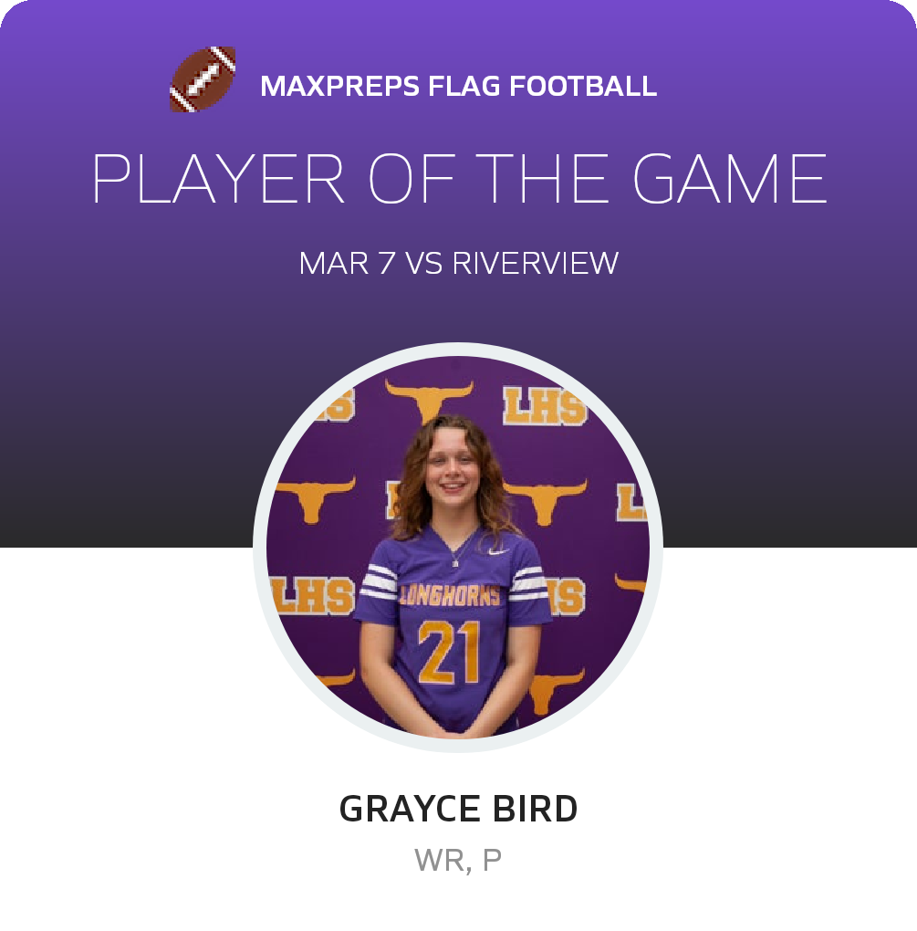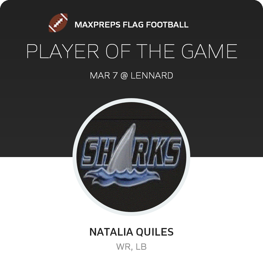 Congratulations to #21 Grayce Bird for being selected the Lennard Girls Flag Football Player of the Game.