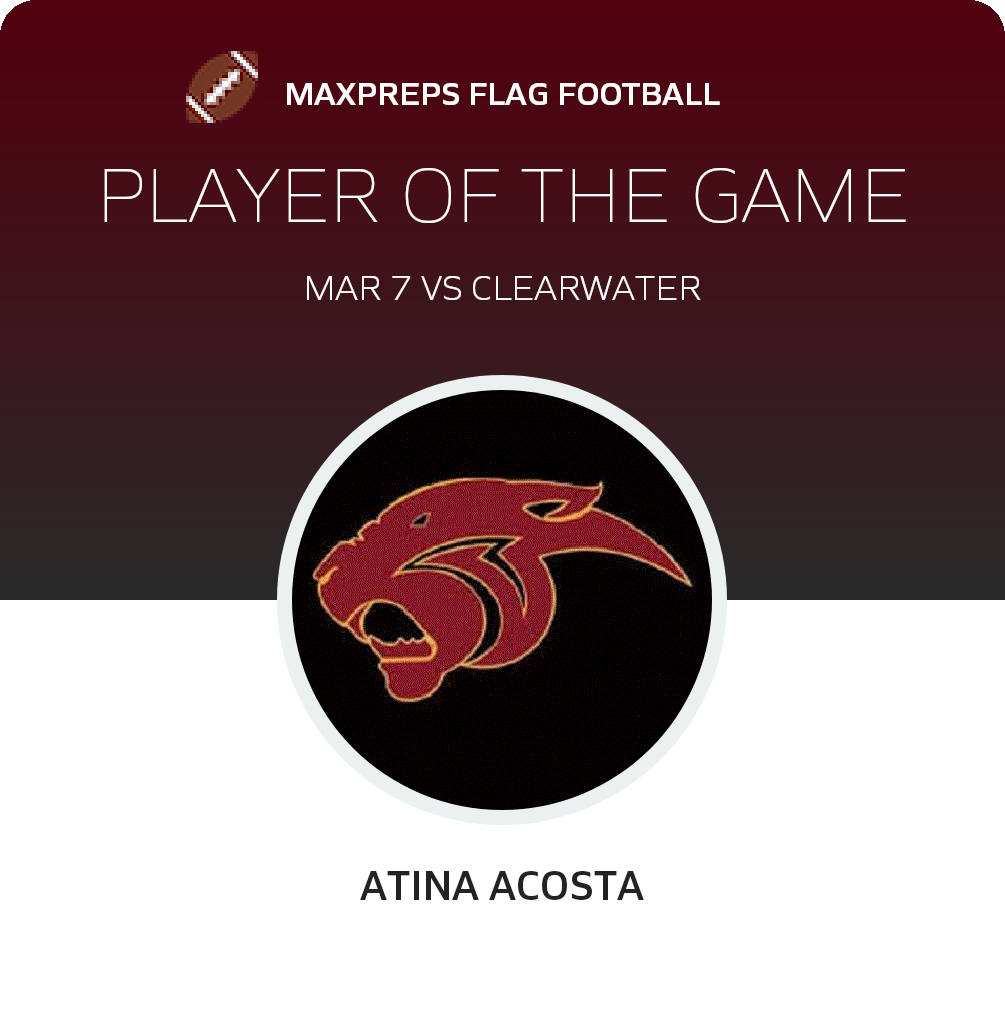 Congratulations to #25 Atina Acosta for being selected the Countryside Girls JV Flag Football Player of the Game.