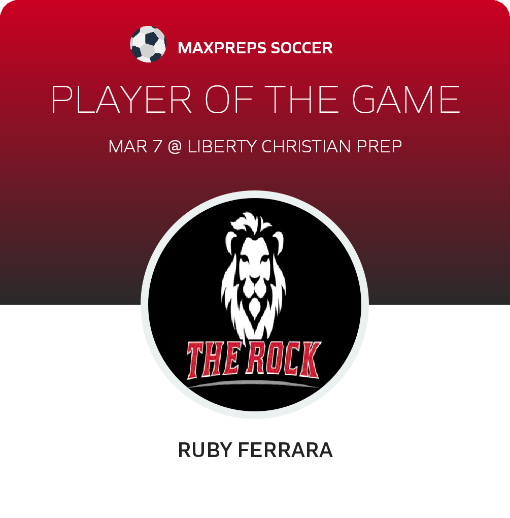 Congratulations to #13 Ruby Ferrara for being selected the The Rock Girls Soccer Player of the Match.