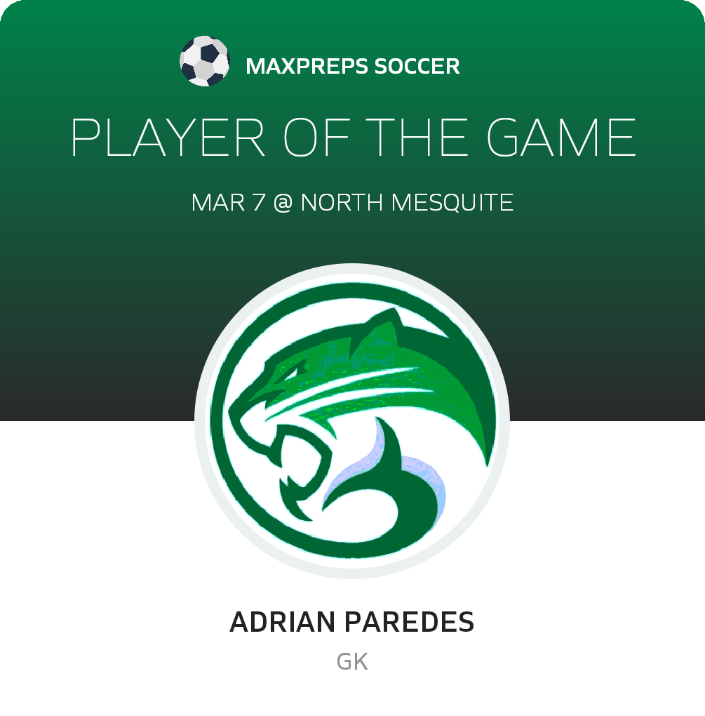 Congratulations to #1 Adrian Paredes for being selected the Adams JV Soccer Player of the Match.