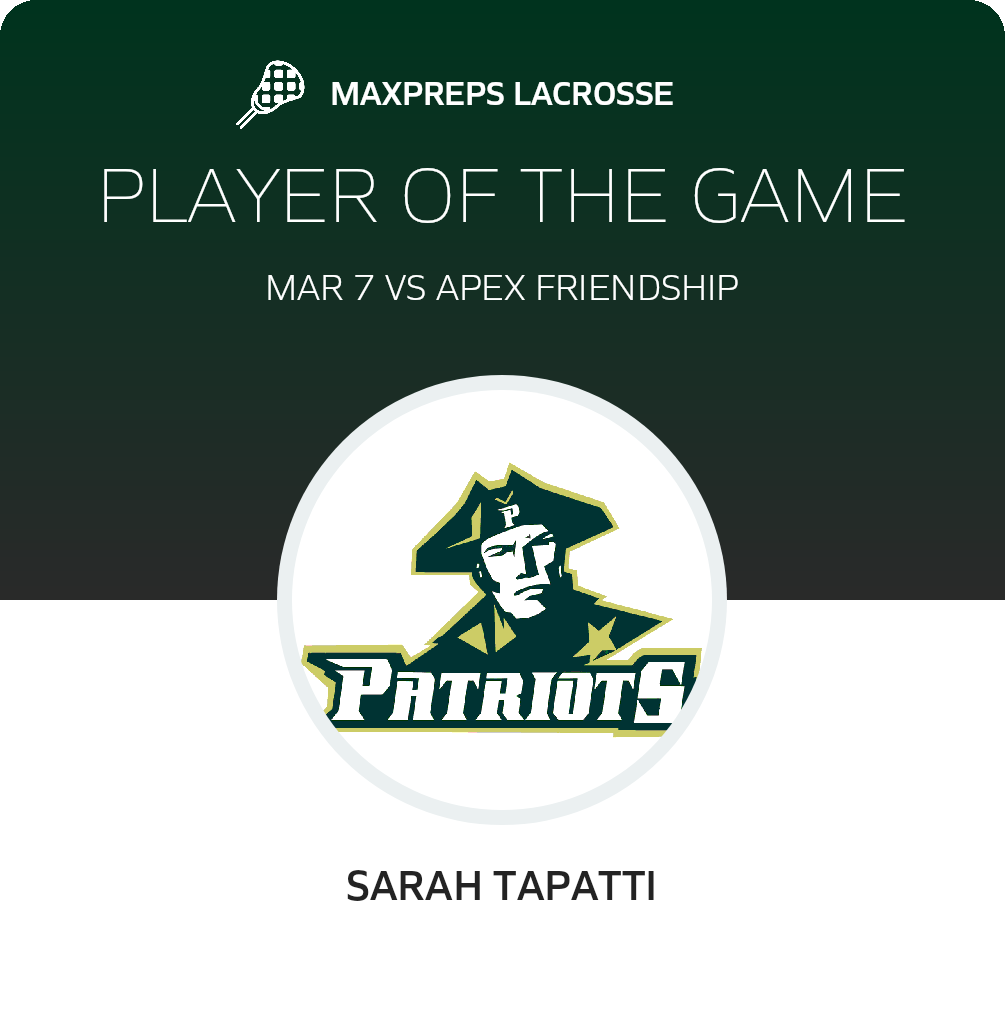 March 7, 2025: Southern Pines, NC 28387 In Friday's non-league match, the Pinecrest Patriots (Southern Pines, NC) lacrosse team edged the visiting Apex Friendship Patriots (Apex, NC), by a count of 7-6.