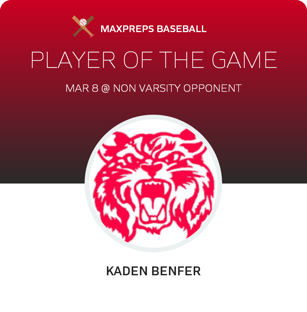 Congratulations to #8 Kaden Benfer for being selected the Gholson Baseball Player of the Game.