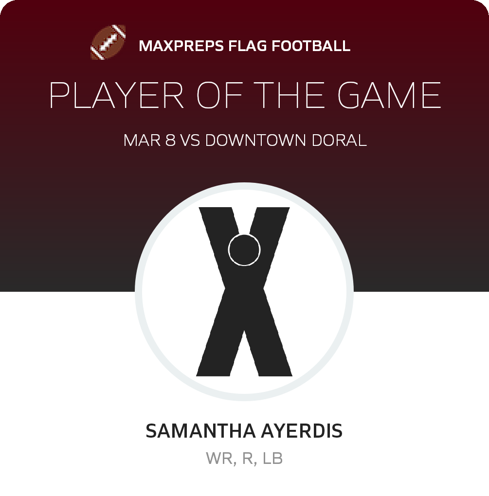 The Academy for Innovative Education (Miami Springs, FL) varsity flag football team lost Tuesday's home non-conference game against Downtown Doral (Doral, FL) by a score of 8-0.