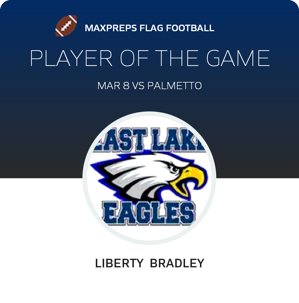 Congratulations to Liberty Bradley for being selected the East Lake Girls Flag Football Player of the Game.