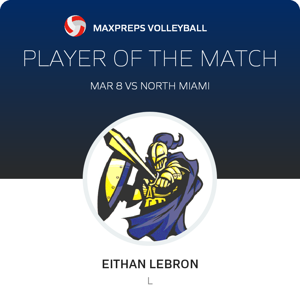 March 8, 2023: Homestead, FL 33035 The Keys Gate Knights (Homestead, FL) volleyball tipped the visiting North Miami Pioneers (North Miami, FL), 3-2 in Wednesday's non-league outing.