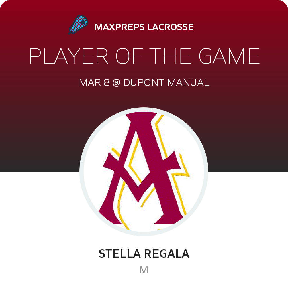 Congratulations to Stella Regala for being selected the Atherton Girls Freshman Lacrosse Player of the Game.