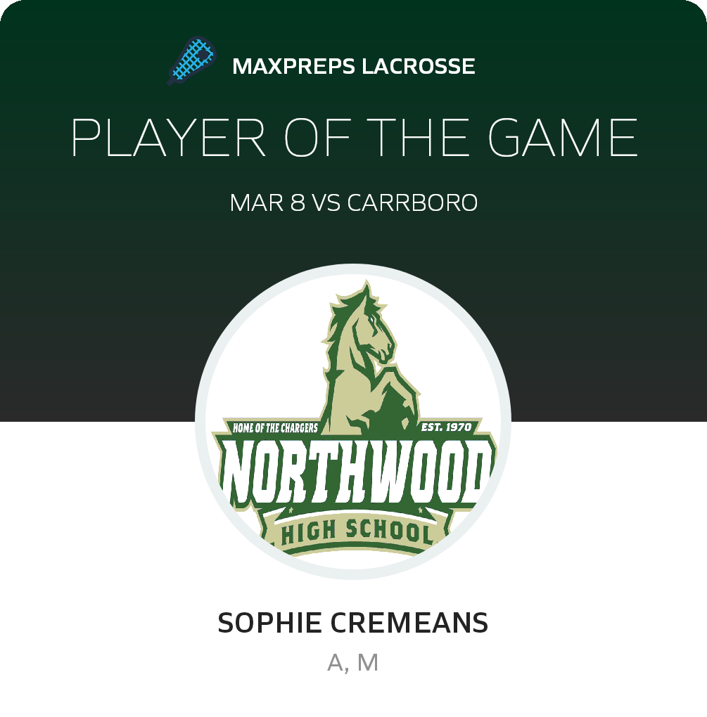 March 8, 2023: Pittsboro, NC 27312 Northwood Chargers (Pittsboro, NC) followers exited the stadium in high spirits Wednesday as they witnessed their lacrosse squad top the visiting Carrboro Jaguars (Carrboro, NC), 17-6 in a league battle.