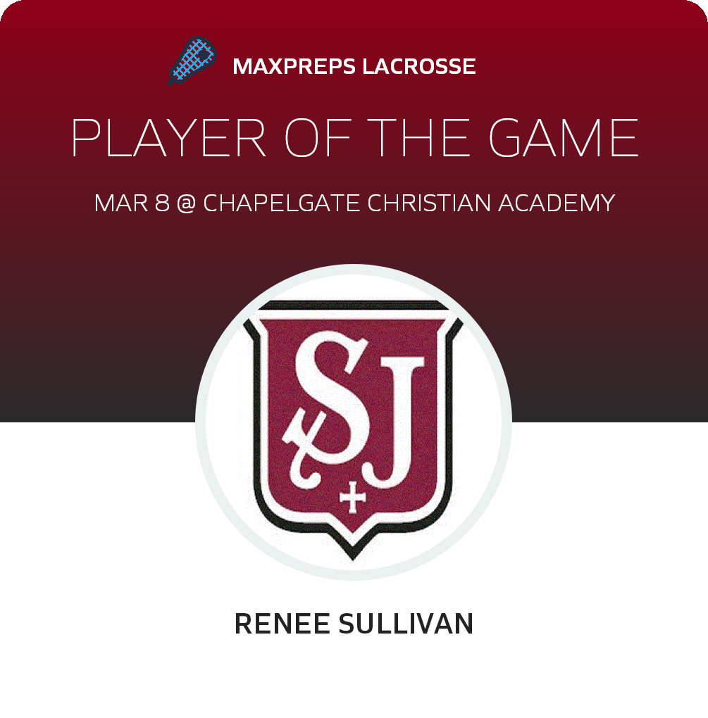 Congratulations to #22 Renee Sullivan for being selected the Saint James Girls Lacrosse Player of the Game.